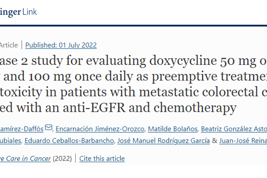 Acknowledgement for APICES collaboration in DERMIA study published in “Supportive Care in Cancer” This month, we want to share the acknowledgment that APICES has received in the recent publication titled “A phase 2 study for evaluating doxycycline 50…